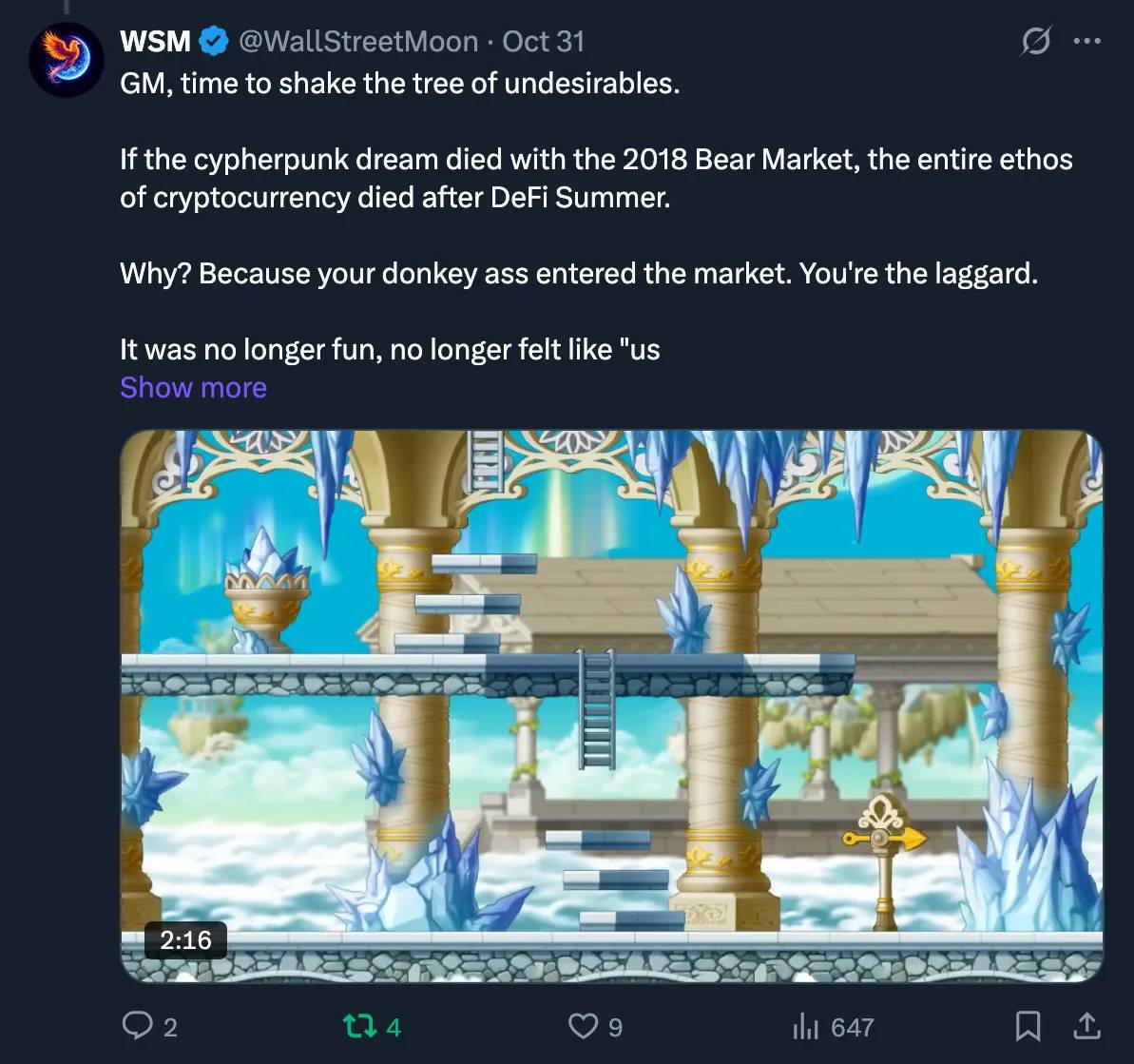 加密推特(Crypto Twitter)现在俨然成了 LinkedIn,而原因其实很简单——所有的优质内容都被“吸走”了,留下的只是浓缩的“退出流动性”和满地的投机者。