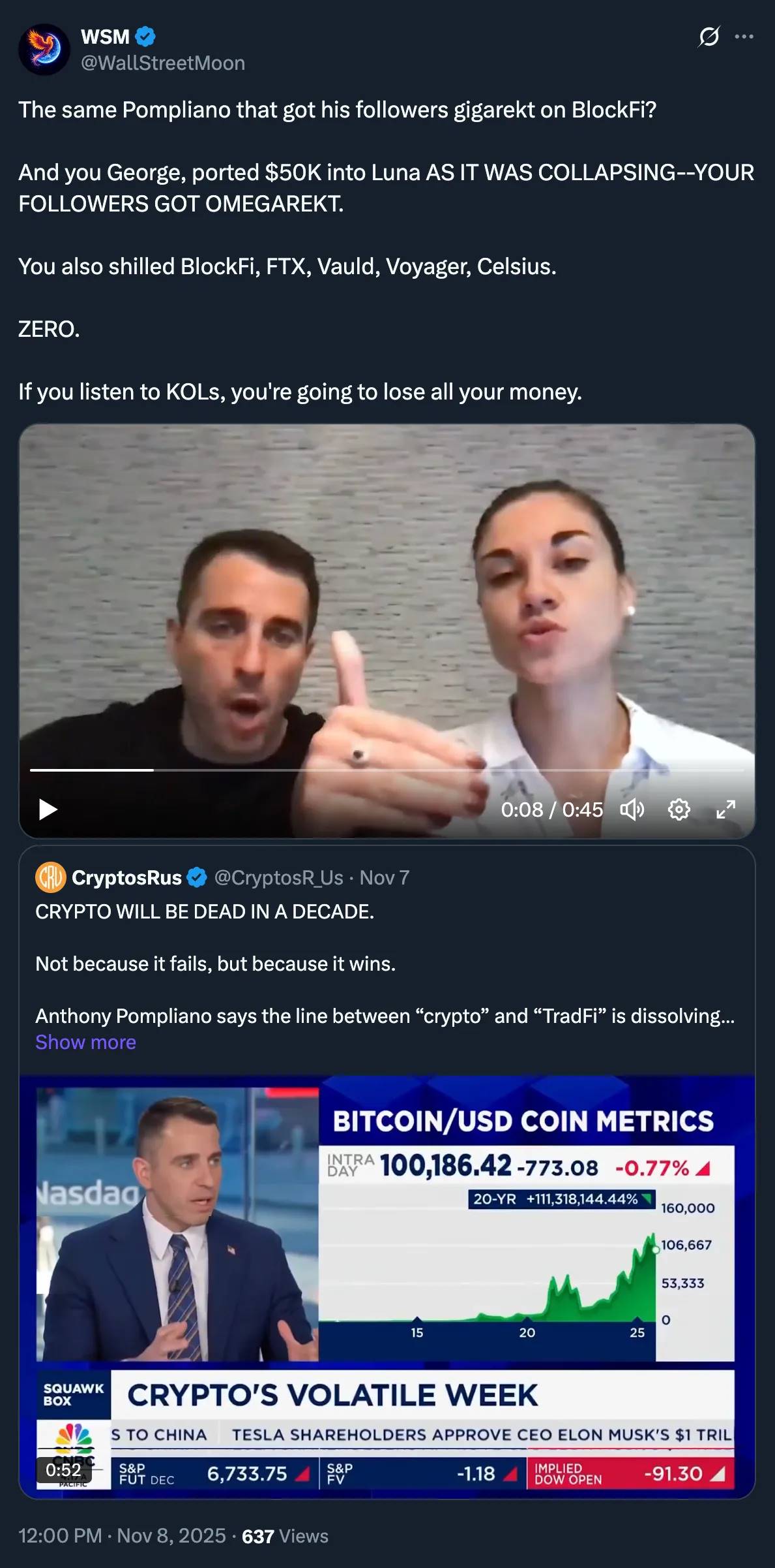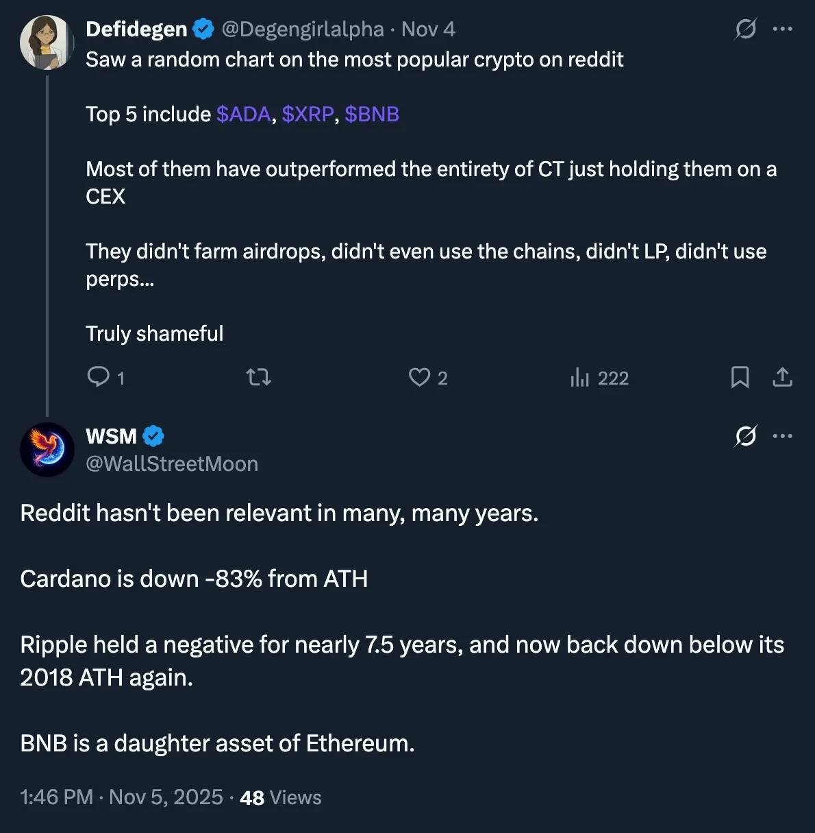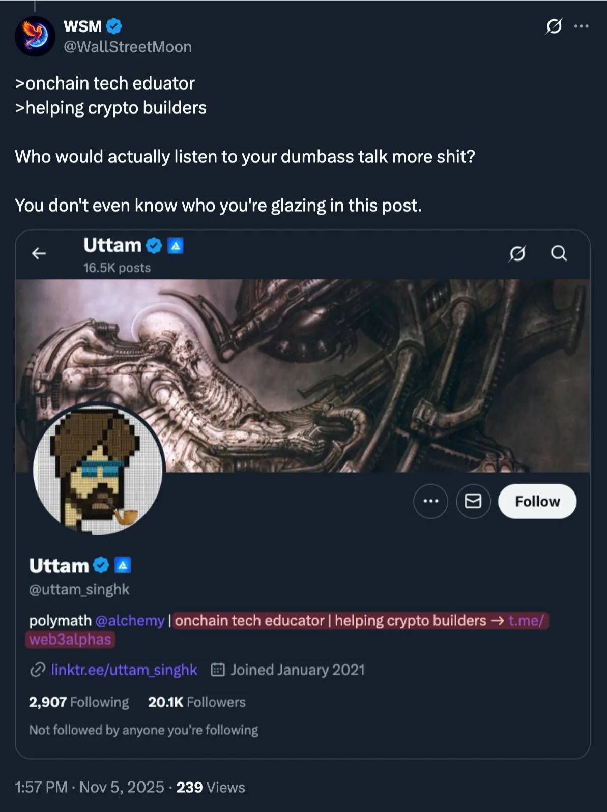 加密推特(Crypto Twitter)忙着讨好所谓的“关键意见领袖”(KOLs),而没有抓住这些黄金机会。到了 2025 年,他们还在舔这些 KOL,却还在抱怨为什么自己从未赚到钱。