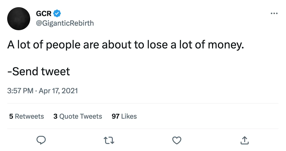 如今,这个地方已经不复当年,所以我不会点名。但我大部分时间都待在别处,这让我相较于大多数加密推特用户拥有了天然的优势。在那个遥远的地方,每个人都天生具有竞争意识,而不是沉迷于所谓的“社区情怀”(muh community),这也促使你成为一个更优秀的投资者。