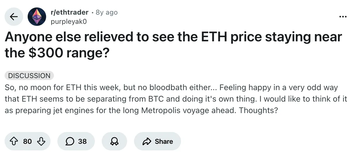 把比特币和以太坊的价格冻结在今天,退出市场永远不碰。够了吗?这才是衡量“早期”投资者的唯一标准。