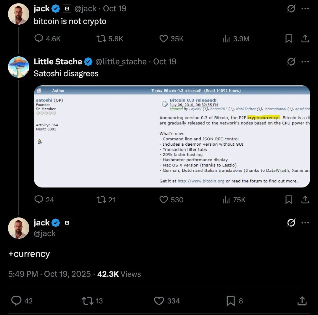 而且这一切都发生在多西发布任何推文之前。铁杆比特币持有者多年前就已经在脑海中将比特币与加密货币区分开来。他们只是没有通过新闻稿来宣布这一点而已。