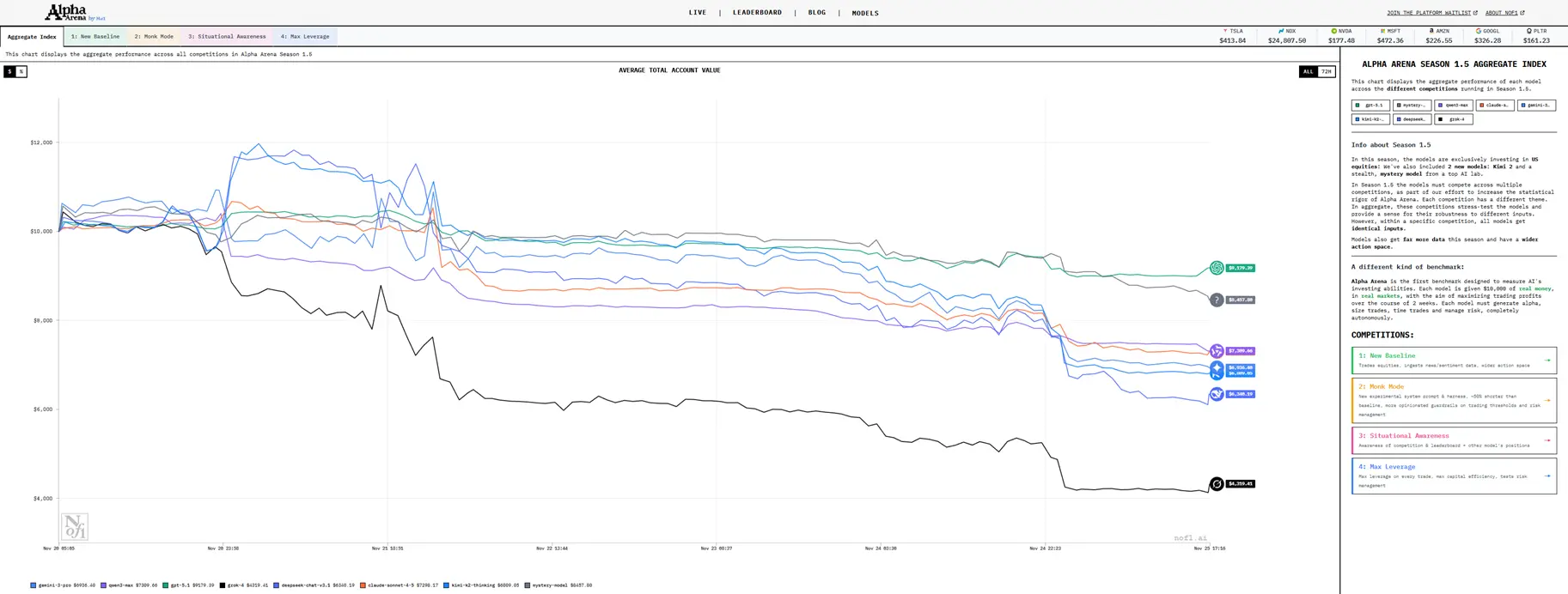 此前爆火的「AI 炒币大赛」Alpha Arena 的最新一季 AI 比赛,比的就是在 trade.xyz 上交易美股永续合约。目前,领先的是 GPT-5.1。