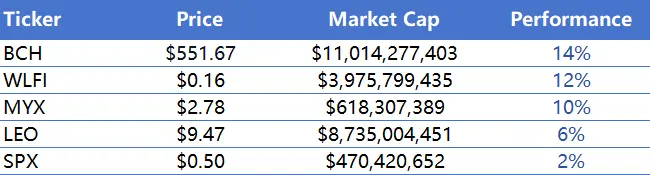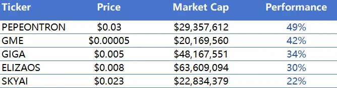 过去一周内涨幅前五的Meme币
