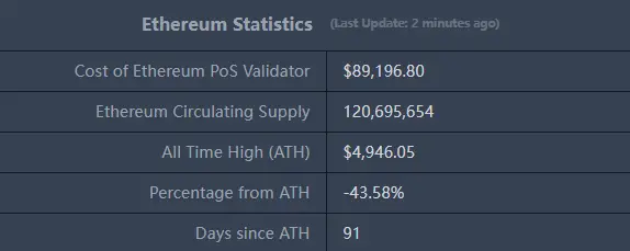 ETHUSD :现价2,783美元,历史最高价4,946.05美元,距最高价跌幅约43.58%
