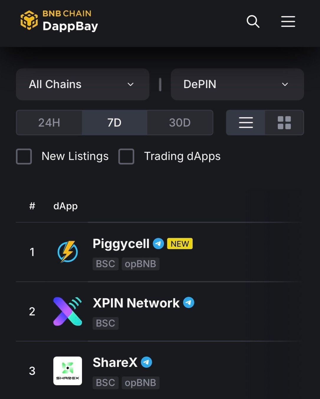 该项目目前在 BNB Chain DappBay 的 DePIN 板块位列七天热度榜首。