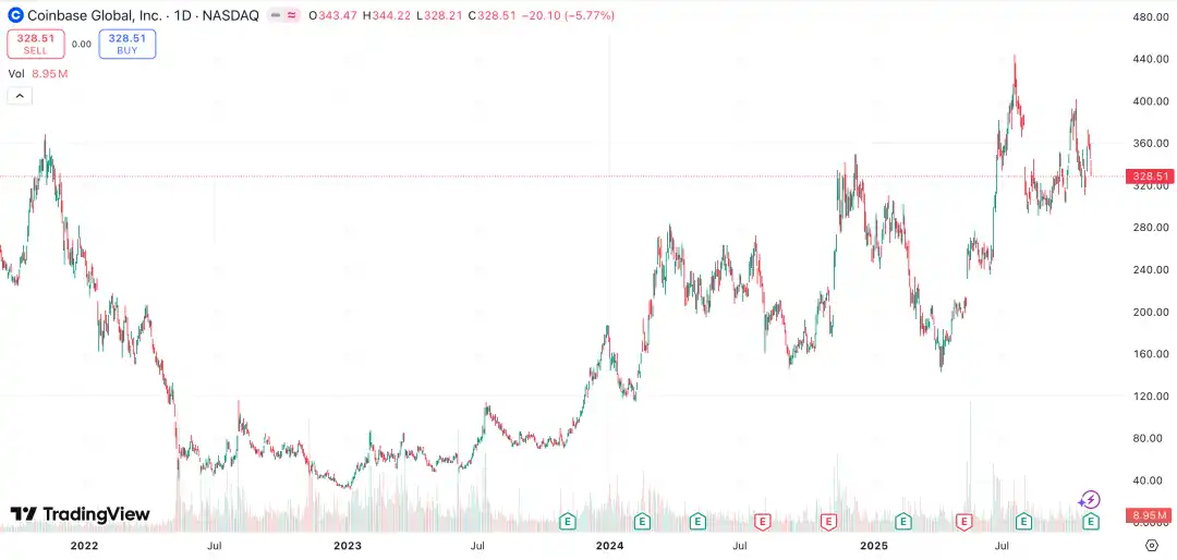 回想 2023 年至今,加密第一股 Coinbase 的股价像过山车,从低谷的 30 美元爬到如今的 300 美元上方,靠的不是运气,而是两条腿走路:Base 和 USDC。