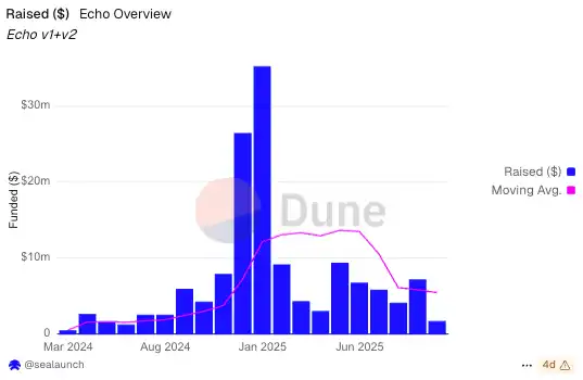 Echo 是一个链上资本继承平台,由知名加密交易员 Cobie 创办,旗下有 Sonar 公募工具。Echo 已帮 300 余个项目募资超 2 亿美元,比如 Plasma 的 XPL 代币销售。