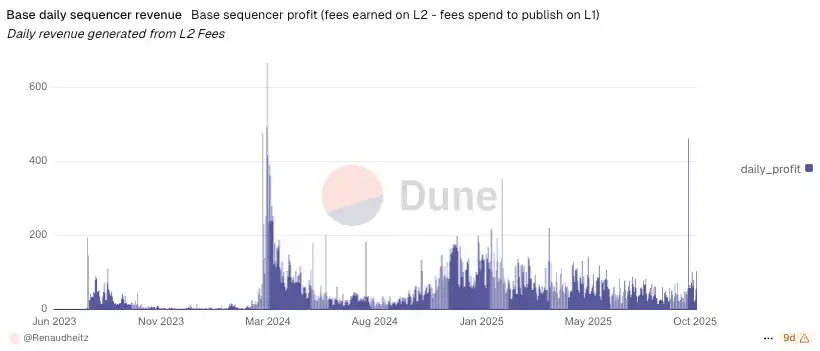 对 Coinbase 而言,这场故事带来的结果是 Base 从低费红利中获益。