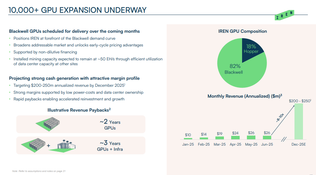 在 AI 基础设施领域,IREN 的竞争优势十分亮眼: