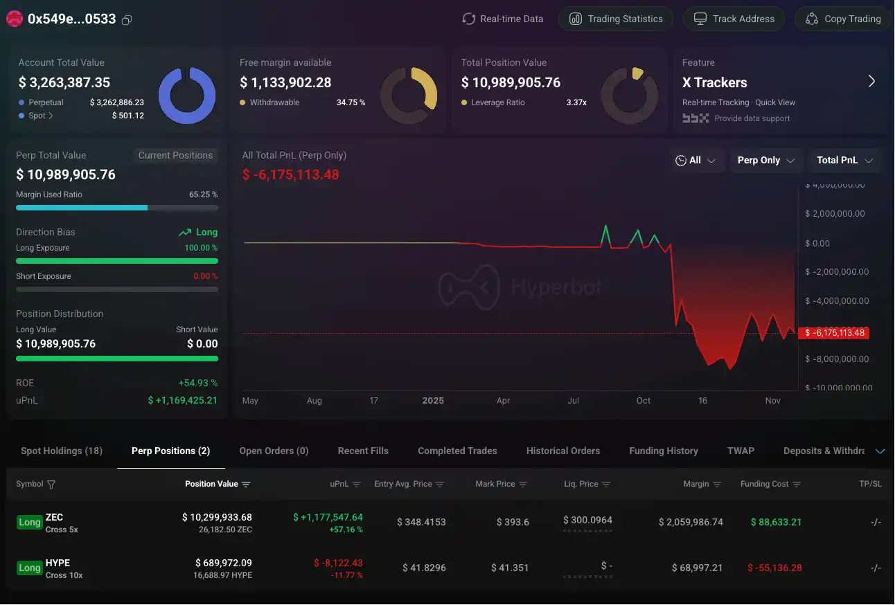 链上信息:https://hyperbot.network/trader/0x549e6dd8453ed87fccdcf4f8b37162b10edc0533