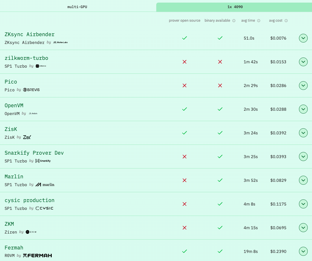 而这一切也并非 Airbender 独立的功劳,算法与工程的优化仅是其一,与 ZKsync 技术栈的深度融合才是效果最大化的关键。更重要的一点就是,它表明了使用单块 GPU 实现以太坊主网实时证明是可能的。
