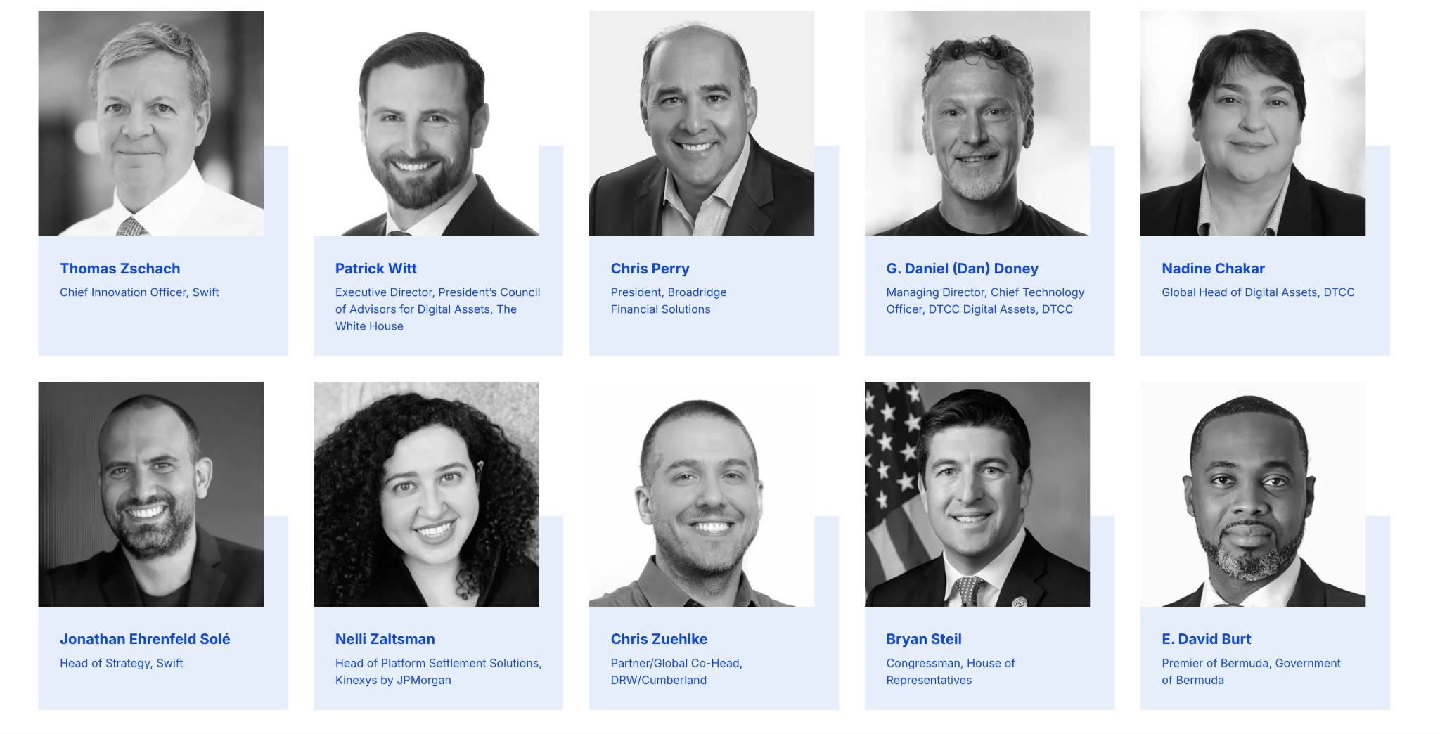 发言嘉宾包括美国威斯康星州众议员也是众议院加密市场结构法案CLARITY法案的最初共同发起人之一Bryan Steil、白宫数字资产顾问委员会执行董事Patrick Witt、联邦储备委员会高级副董事David Mills,以及来自Euroclear、DTCC、Swift、摩根大通、瑞银、WisdomTree、花旗银行、富达、Aave、Ondo、Solana、21X、Maple Finance等顶尖机构和领先DeFi项目的代表。