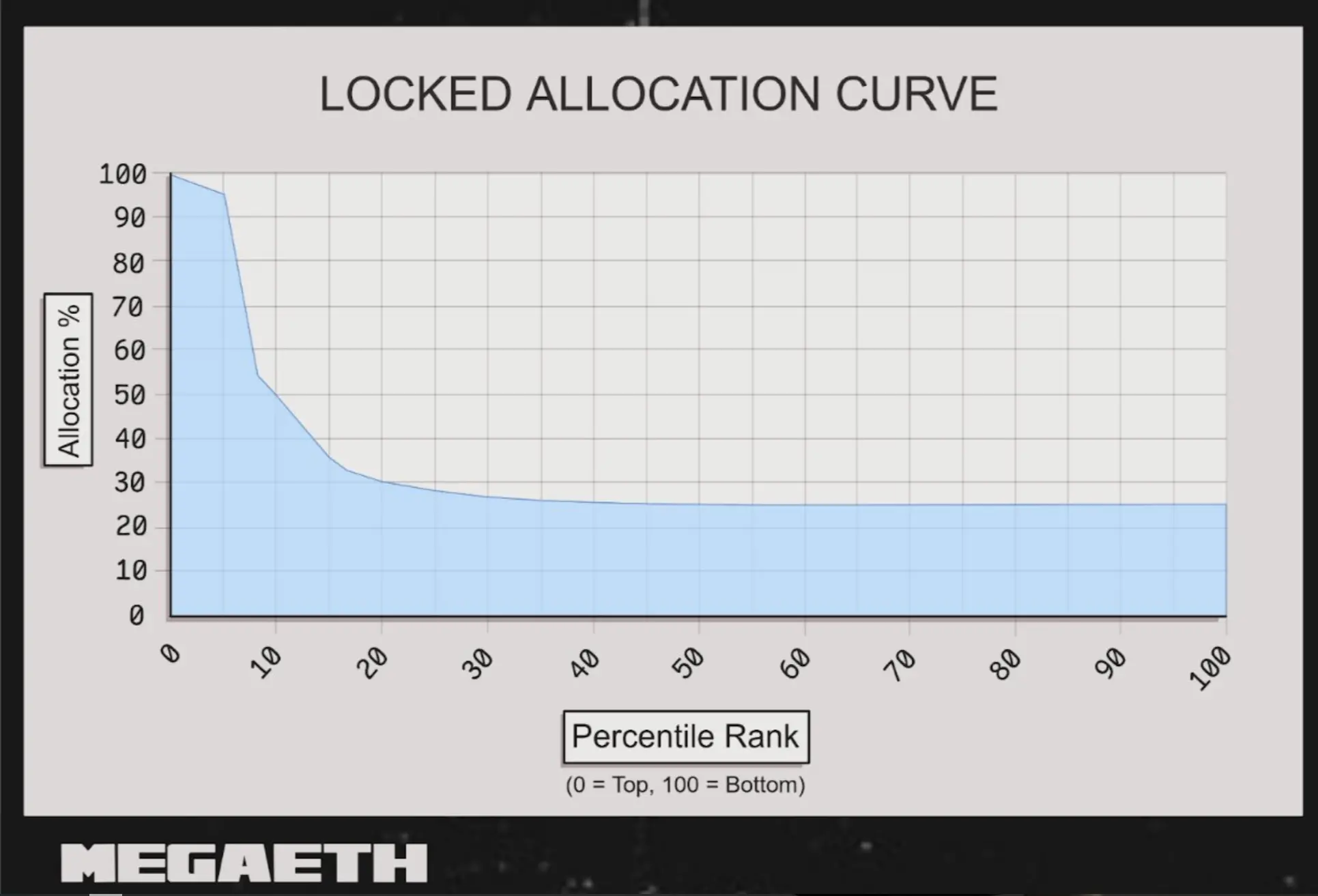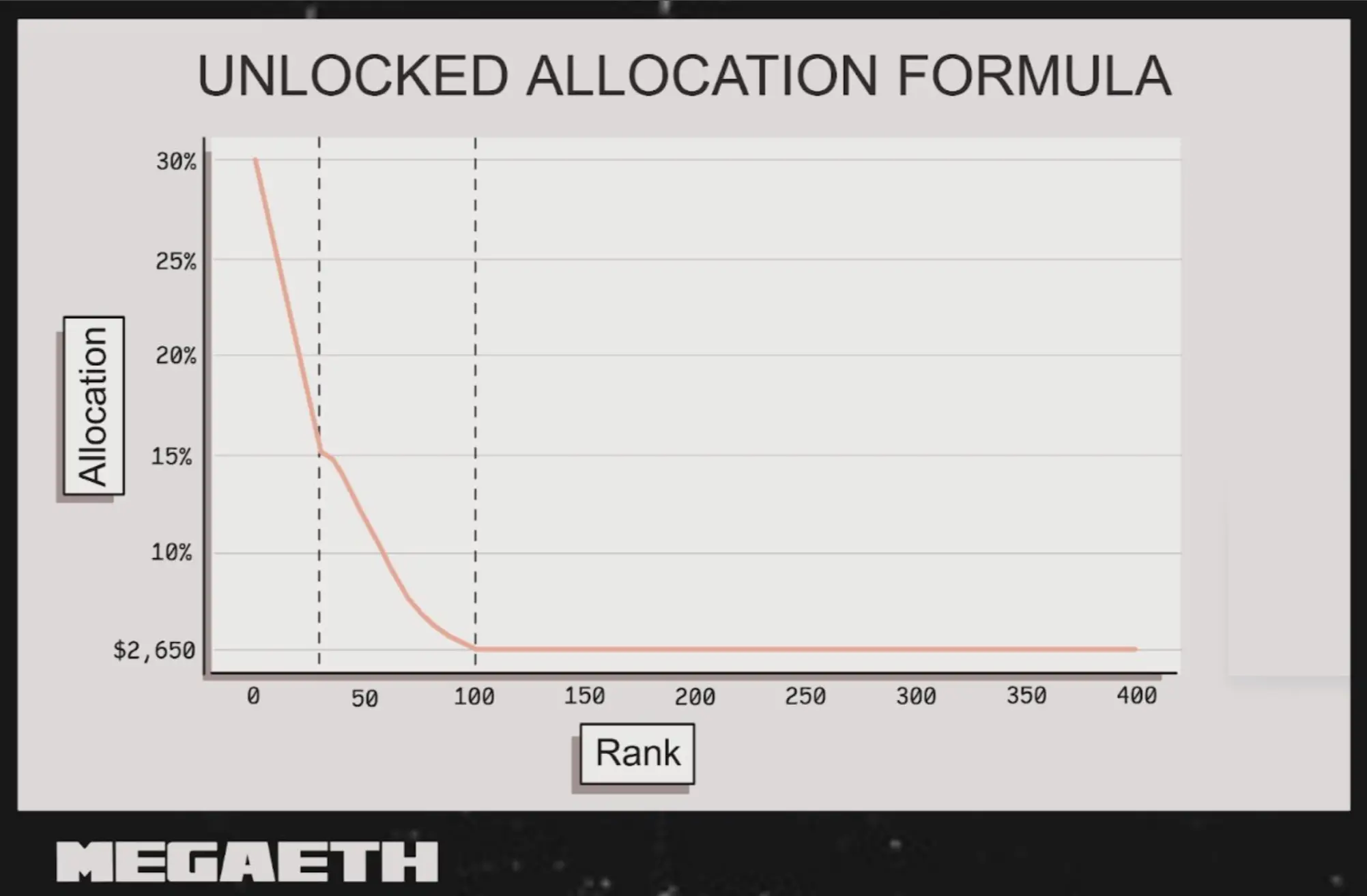 在排名的顶部,分配遵循平滑的下降斜率。排名最前的钱包获得最高的分配份额,并且随着你排名的下降,这一比例逐渐降低。