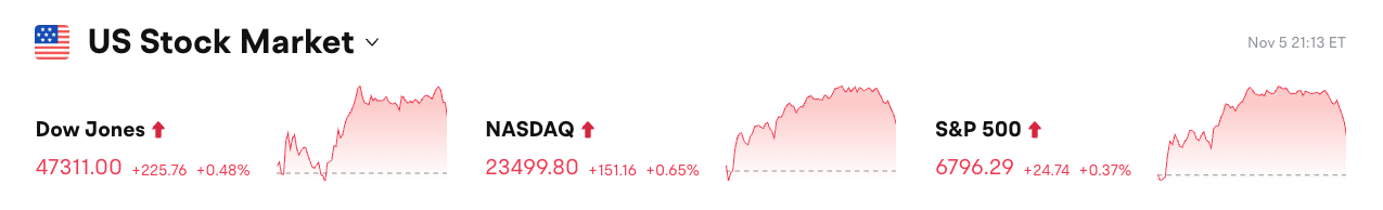 2、美股周三收高,道指涨 0.48%,纳指涨 0.65%,标普500涨 0.37%,AI板块反弹,优于预期的就业数据提振市场;
