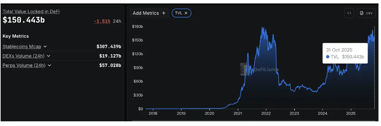 根据DefiLlama最新数据,全球DeFi TVL已突破1500亿美元,但增长率放缓至15%,远低于2020年的爆炸式扩张。