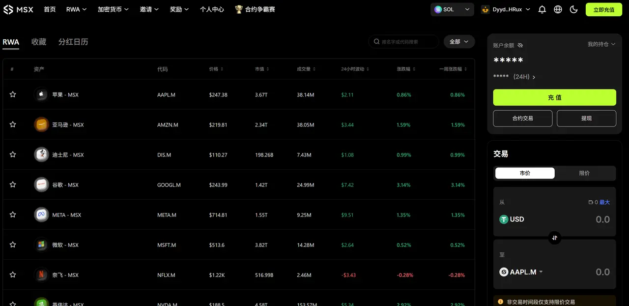MSX 实用手册:从 U 到美股代币,链上直通 TradFi 的全流程指南撰文:Web3 农民 FrankRWA 与链上的最大公约数到底是什么? 在美股屡创新高,Alt 流动性趋紧的大背景下,相信越来越多人开始意识到,真正具备确定性、可验证现金流和真实收益的资产,正在成为链