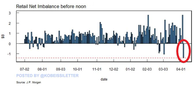 周五,美国东部时间上午 9: 30 至中午 12: 00 之间,零售投资者抛售了 15 亿美元的股票。