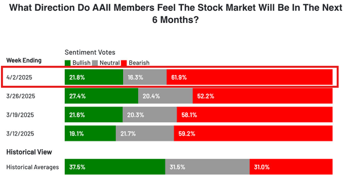 61.9% 的投资者持悲观态度,这是历史上第三高的读数。