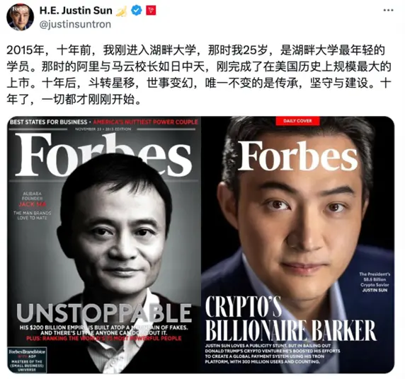 当福布斯封面从“西湖论剑”的马云转向“加密布道”的孙宇晨,一场关于商业权力代际更迭的隐喻正在浮现:传统互联网巨头让位于加密新贵,中国企业家从“跟随者”蜕变为“规则制定者”。