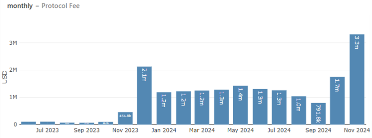 我们可以看到,截至笔者撰稿日(2024.11.30) Metaplex 最新的月活跃用户数为 844,966,创出月度历史新高,同比增长 253%。
