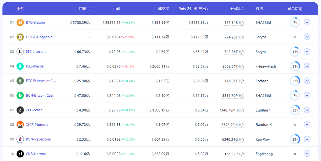 根据官方区块链浏览器,Kaspa的算力为2.6–2.7 PH/s。根据Mining Pool的数据,Kaspa的算力排名在30名左右,在BCH、BSV、DASH之后,在DOGE、LTC之前。