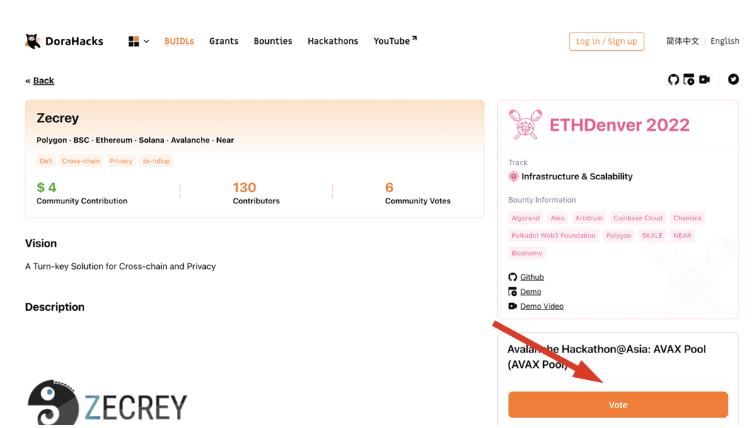 【潜在空投】在Hackerlink上投票支持Zecrey协议(AVAX链)