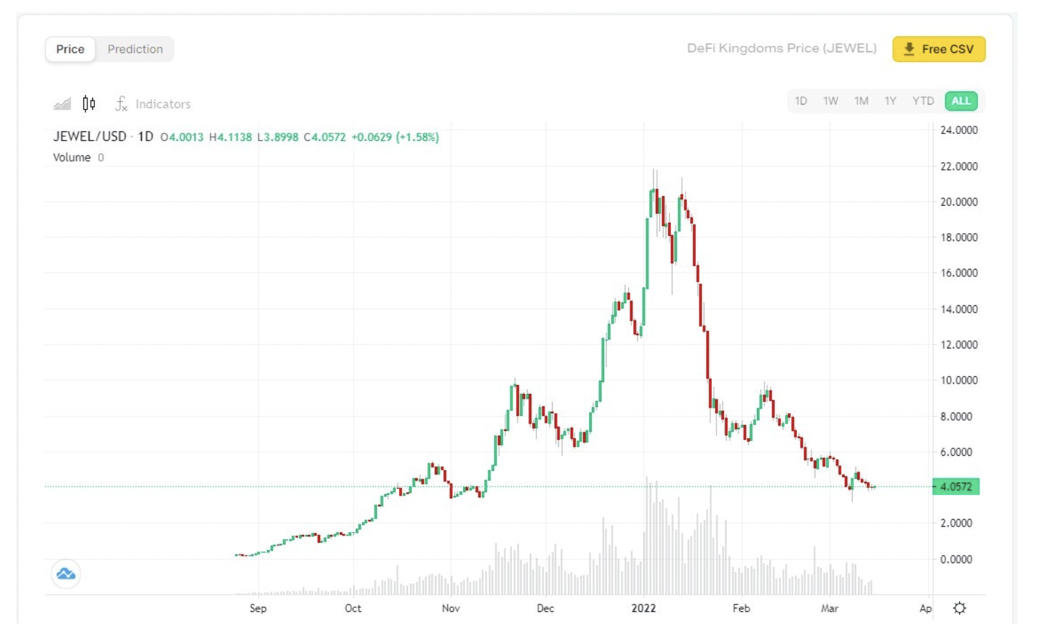 - Jewel和其他许多元宇宙代币也被市场击垮了,尽管它没有像许多早期的DeFi代币那么糟糕,因为这些代币并没有长期处于下降趋势中,而且在第四季度的表现优于市场。