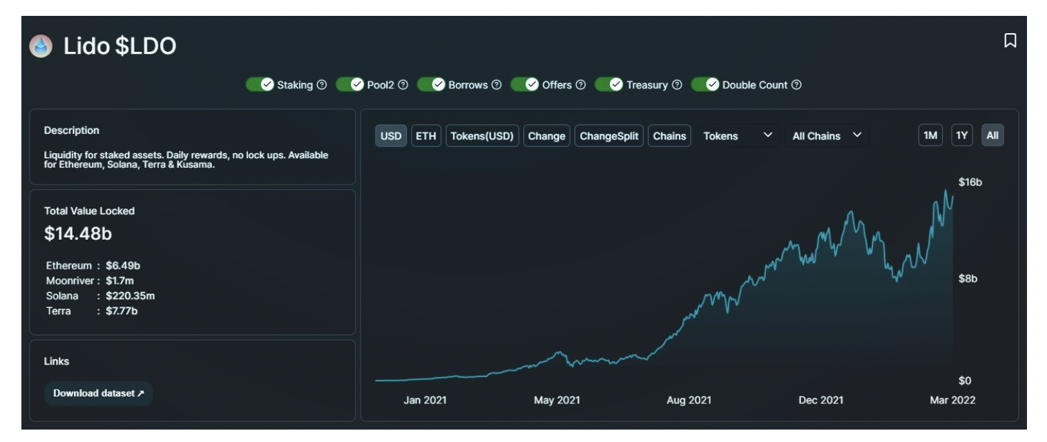 我在上一篇文章中已经详细介绍了我对以太坊的大部分看法,所以在这里就不多做阐述了,因为没有什么变化。我仍然相信,当市场风险提高时,很容易就能找到其他表现优于ETH的代币,而当市场风险降低时,我认为BTC在这里有比以太坊更强表现。对于合并,我认为发挥最大的是Lido,流动性质押解决方案,因为它在很大程度上有利于那些想参与ETH质押但仍想获得他们的资金用于DeFi其他部分的用户。他们最近进行了一轮由a16z领投的融资,他们说他们已经使用该服务为他们的ETH做了抵押。Lido的定位很好,可以通过他们的服务支持机构投资者和散户投资者,也可以支持其他L1,因为他们是多链。