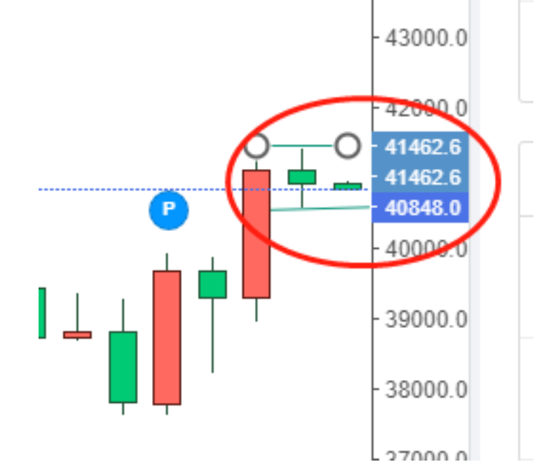 We could see the highest price was 41406 and the lowest was 40557.8.