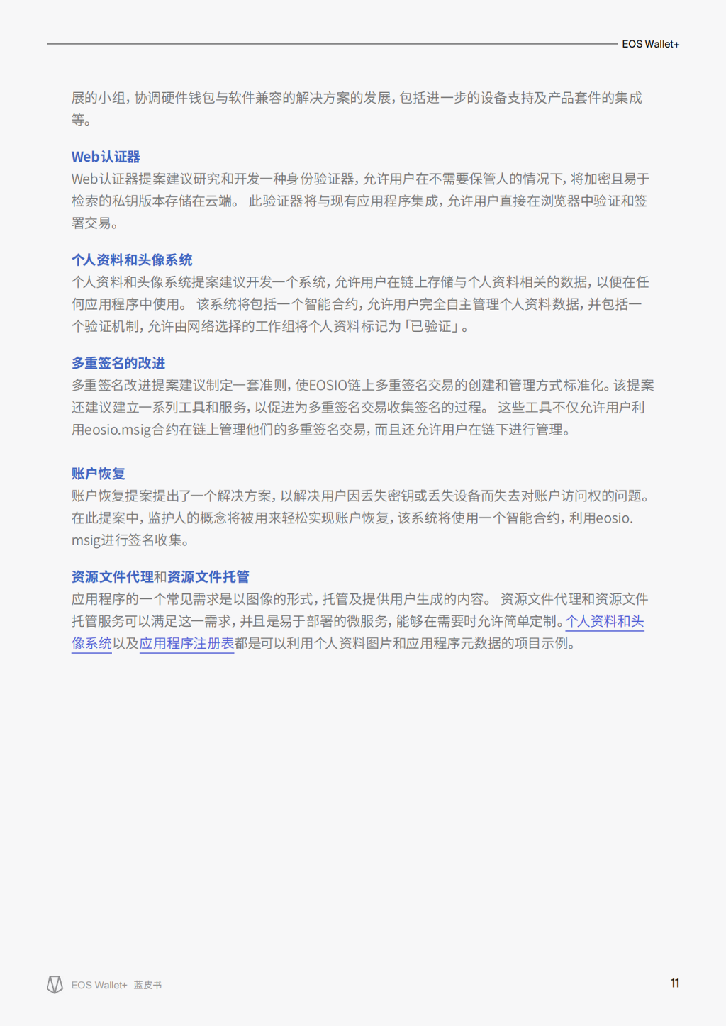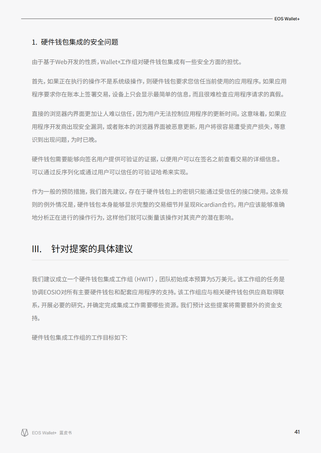 未来的研究该方向的工作组将把Wallet+蓝皮书作为进一步研究的基础。Wallet+蓝皮书的目的是迈出第一步,而不是走完整条路。通过此次研究,我们开始定义未知,提出建议,以便下一阶段的工作组可以将我们的研究做为走向成功的垫脚石。