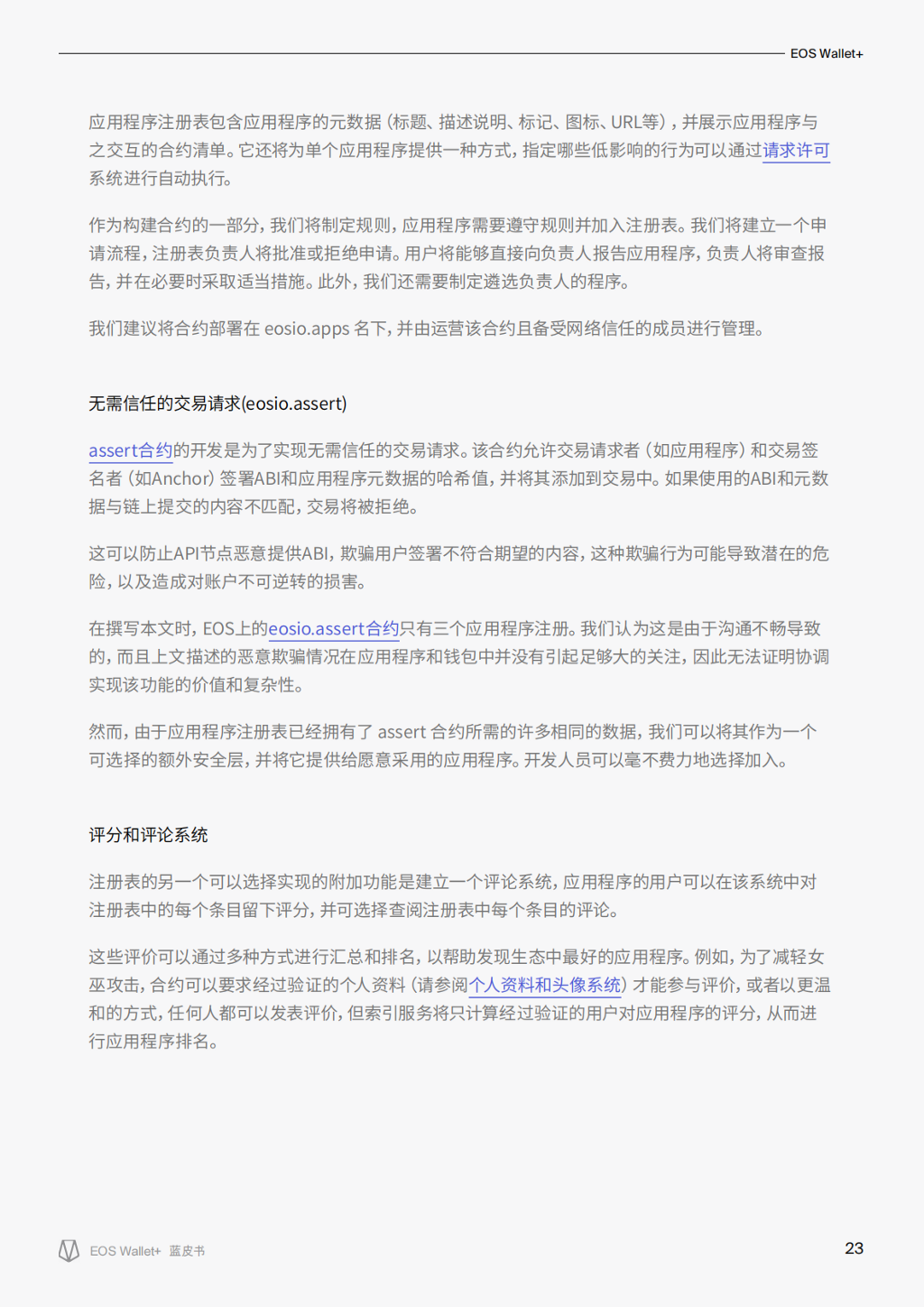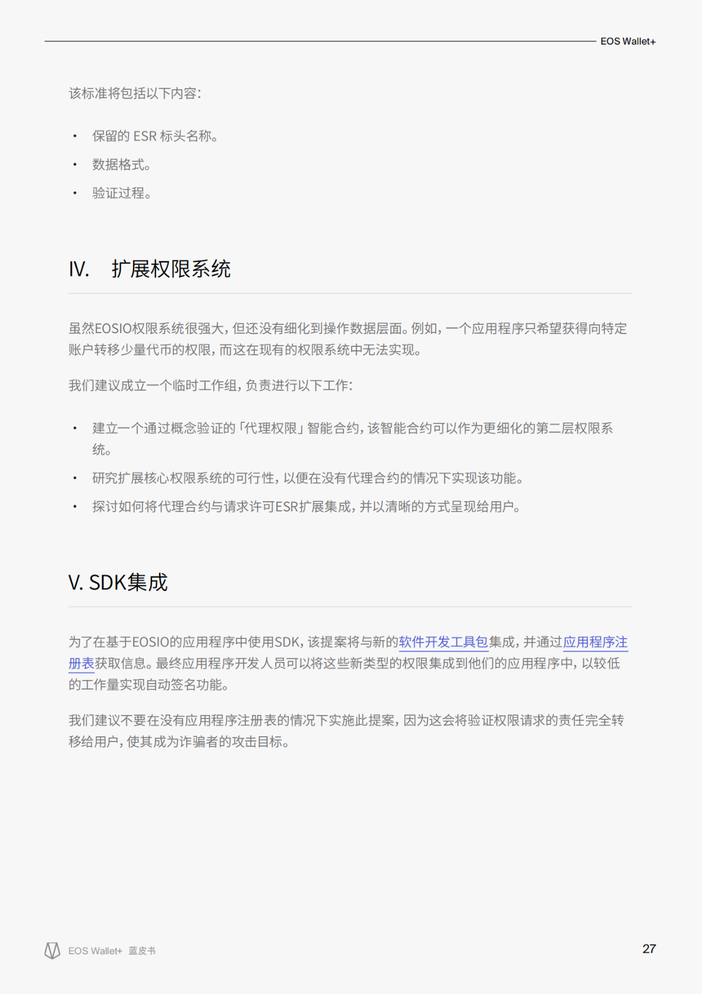 通过改善相关关键领域,我们可以为开发者和用户提供一个更安全、更易理解、更受欢迎的生态系统。这些系统改进建议的目的是减少大家进入生态的障碍,鼓励EOS应用到更广泛的生态,并旨在为用户和开发人员减少工作量和增加扩展功能的一致体验。