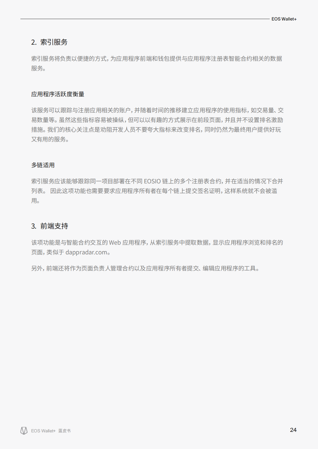EOS社区拥有许多才华横溢、富有洞察力的个人,社区的强大力量在许多方面都有体现,包括丰富多样的经验、对可用工具和策略的看法等等。因此,EOS网络基金会也欢迎社区对蓝皮书提出反馈,有效反馈者可获得 100 至 2000 EOS的奖励:
