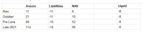 iii) 在那次崩溃之后,据我所知,Alameda有大约110亿美元的资产和大约110亿美元的负债,按市值计价,包括它在ftx上的头寸。然而,许多资产流动性不太好,不能迅速出售。我认为,这些资产中大约有30亿美元具有高流动性,从而留下了大约80亿美元的流动性缺口。