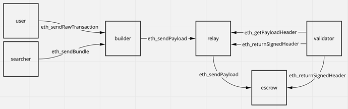 在 2021 年,Vitalik 与以太坊基金会的研究员对提议者/构建者分离方案 (PBS) 提出了具体的设计,以解决 MEV 问题。同年的 11 月,Flashbots 团队便基于 PBS 的设计提出了 MEV-Boost,用于合并后的 Flashbots 架构,可以看作是 PBS 的原型。Flashbots 竞拍架构允许验证者将区块构建外包给一个第三方区块构建者网络,但将 mev-boost 中继置于受信任的位置——区块构建者和提议者都需要信任中继。