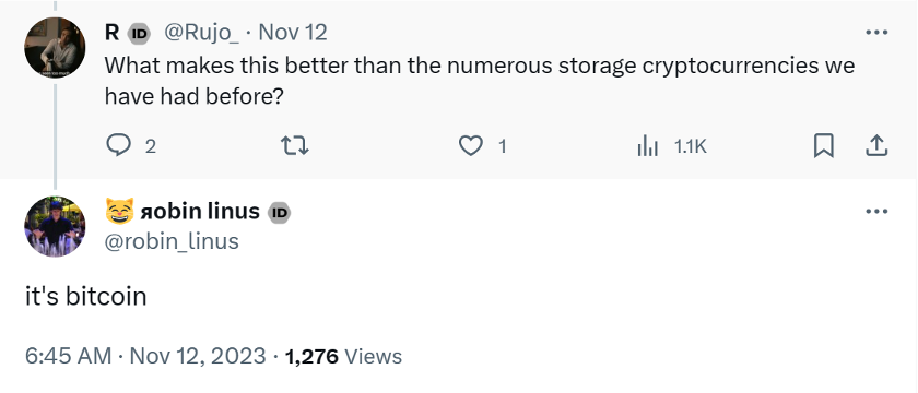 “The real killer app is scaling Bitcoin. [Robin Linus isn’t] a big fan of smart contracts. He’s not a big fan of increasing Bitcoin’s expressivity. He really is interested in making it so that Bitcoin can process millions of transactions per second.”—— Super Testnet, BitVM developer