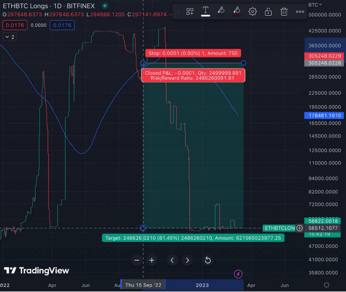 需要承认的是,这种交易明显没有合并时那么拥挤,Bitfinex 上的 ETH/BTC 多头从 9 月 15 日开始下降了惊人的 81.5%。