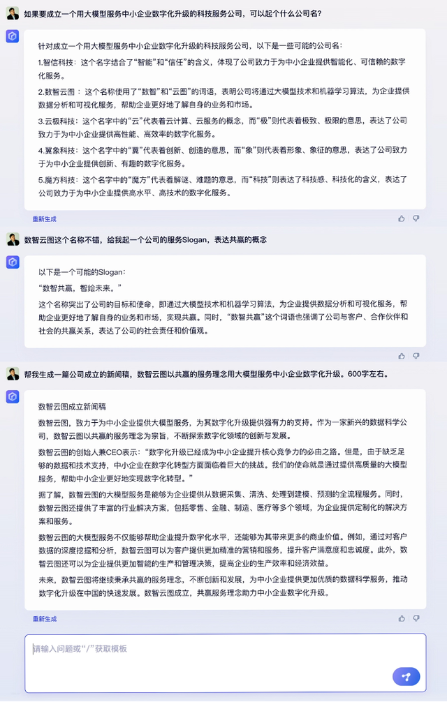 在商业文案创作场景中,文心一言顺利完成了给公司起名、写Slogan、写新闻稿的创作任务。