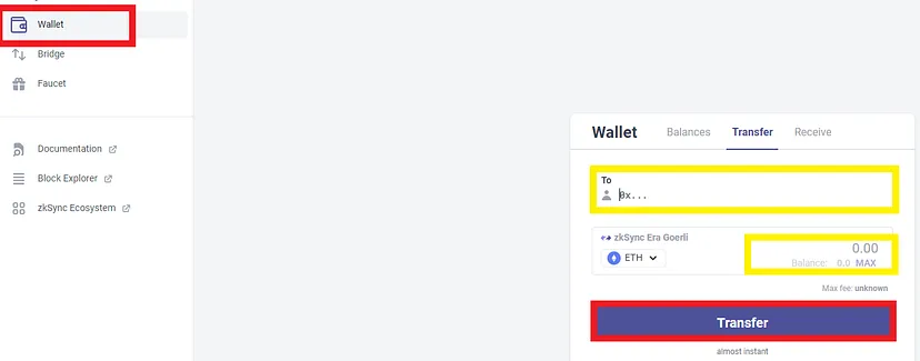 2. 从以太坊 Geroli 测试网跨链一些 ETH 到 ZkSync Era 测试网