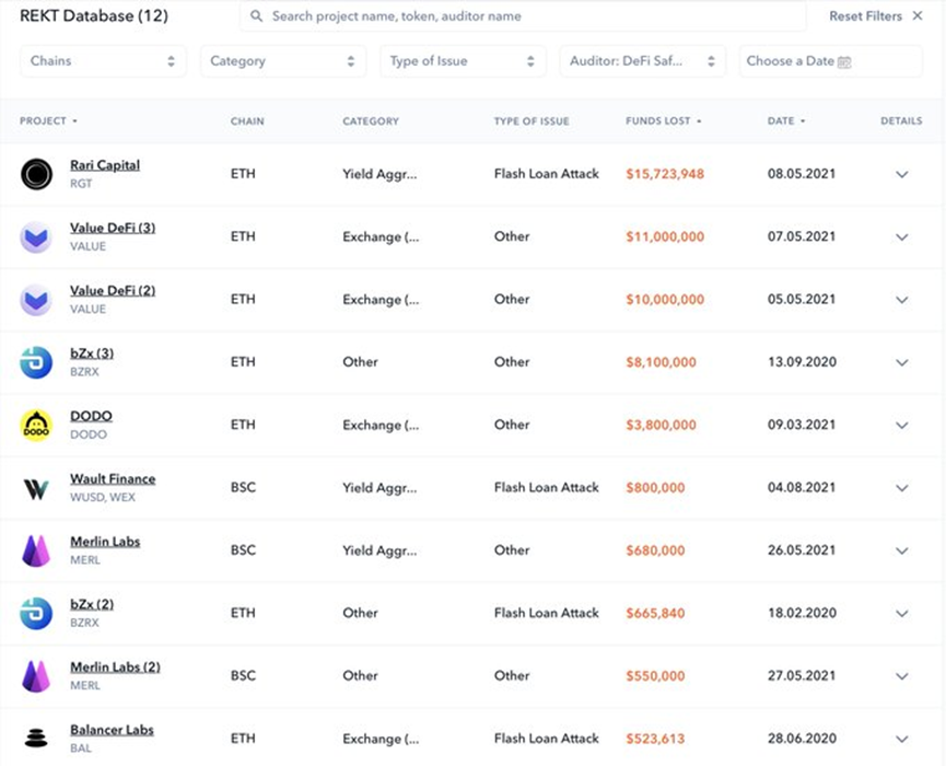 你可以在这里访问: https://de.fi/rekt-database/