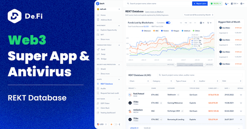该分析是使用REKT数据库服务进行的,该服务收集了自2011年以来Web3中发生的退出诈骗和漏洞利用的信息。数据库里有超过三千个黑客记录。