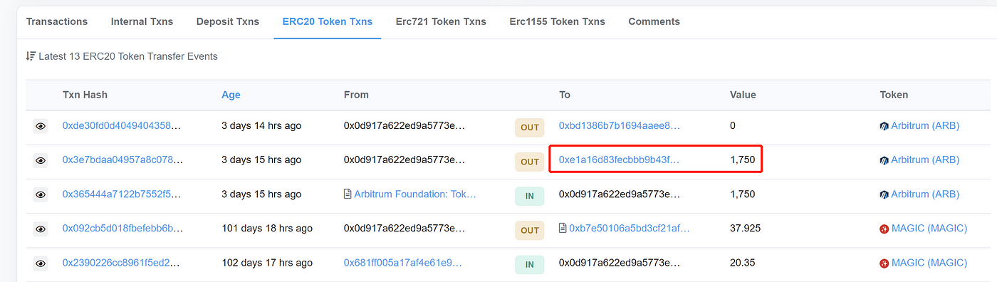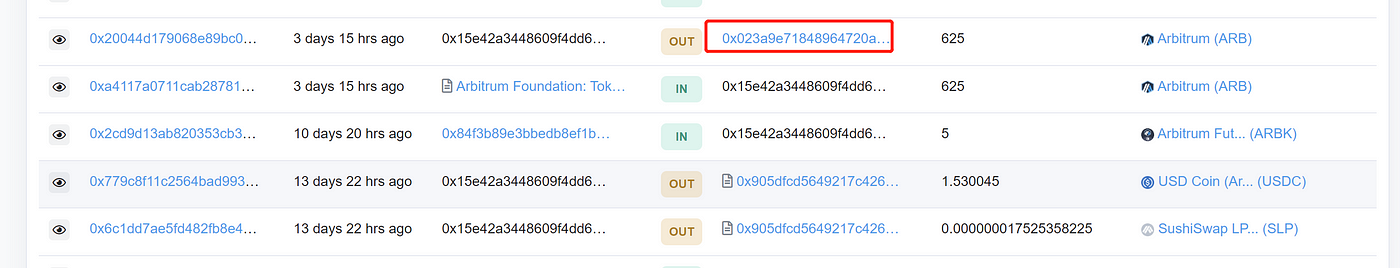 - 转移目标地址的$ARB到交易所地址(Binance Hot Wallet)