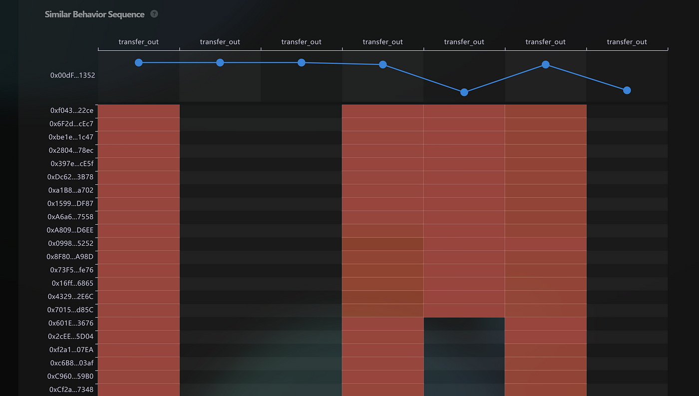 - (图1) 该地址已被发现其处于典型的女巫相似行为序列攻击团伙中(https://www.trustalabs.ai/trustscan/reports/0x00dfa97a2c05b7afc55e40651351a5e40b181352?chainId=1)