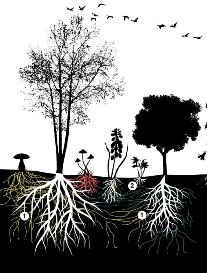 菌丝体是一种真菌,有助于连接树木的根,以帮助它们交换营养物质。我们认为这是对再质押的恰当比喻。