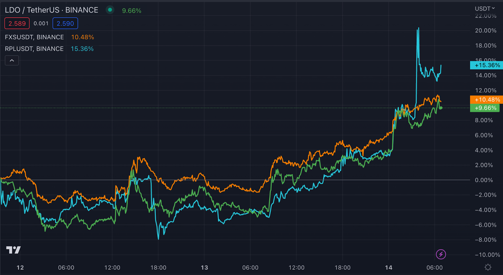 自上佩拉以来,以太坊生态的代币经历了怪异的反弹,其中——毫不奇怪——与质押有关的代币领涨。