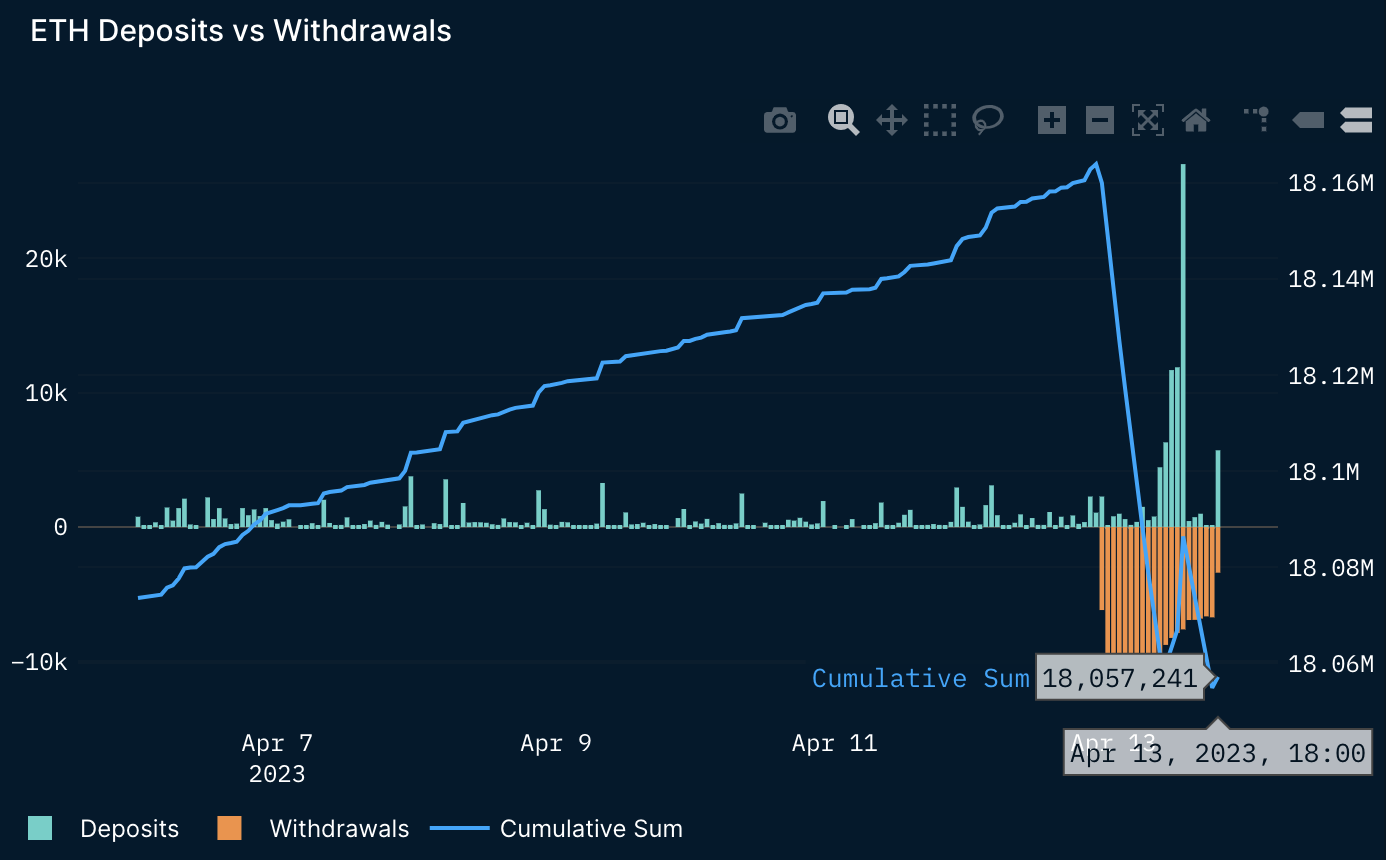 自上佩拉上线以来,流出的资金已经超过了存入的资金,信标链已经出现了 106000 的净以太币流出。虽然上佩拉的影响才刚刚开始,但似乎灾难的预言被夸大了。