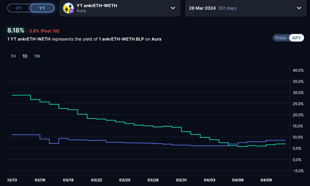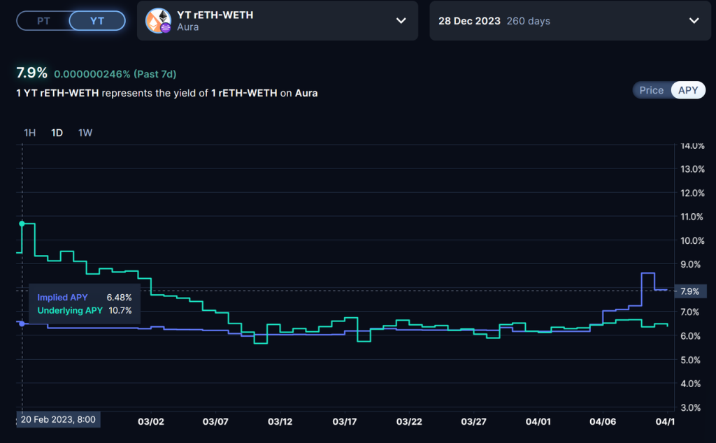 - 利率交易者,可以购买收益代币(YT,yield token),当收益率如期上涨的时候,就可以赚取高收益;