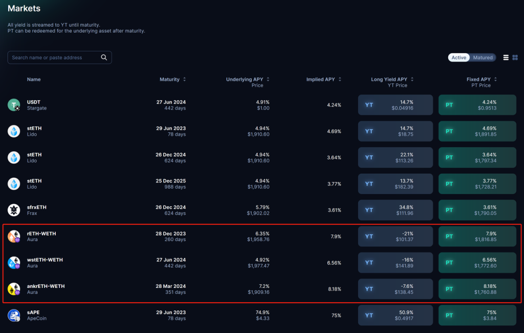 来源:https://app.pendle.finance/pro/markets?utm_source=landing&utm_medium=landing