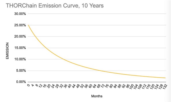 THORChain生态内的RUNE主要分布在两个地方–验证者在Vault当中质押的RUNE和在流动池内的RUNE。THORChain需要确保在Vault当中被质押的RUNE占到RUNE总量当中的67%,而流动池中的RUNE占到总量的33%。这样THORChain才能保证生态当中持有的RUNE价值将会是底层资产的三倍。THORChain通过调整流动池的奖励和质押的奖励来达到分配均衡。