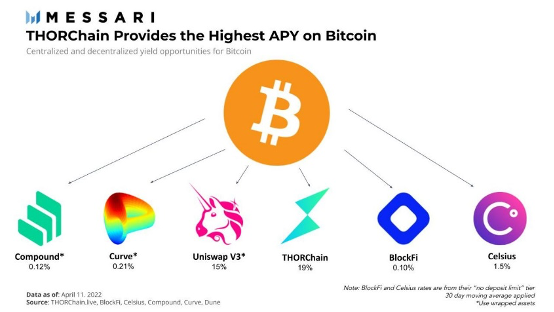 通过这个估算方式,我们可以根据未来THORChain吸引新的资产Staking数量来推算,目前THORChain有着不同生态中最为高的Staking APY: